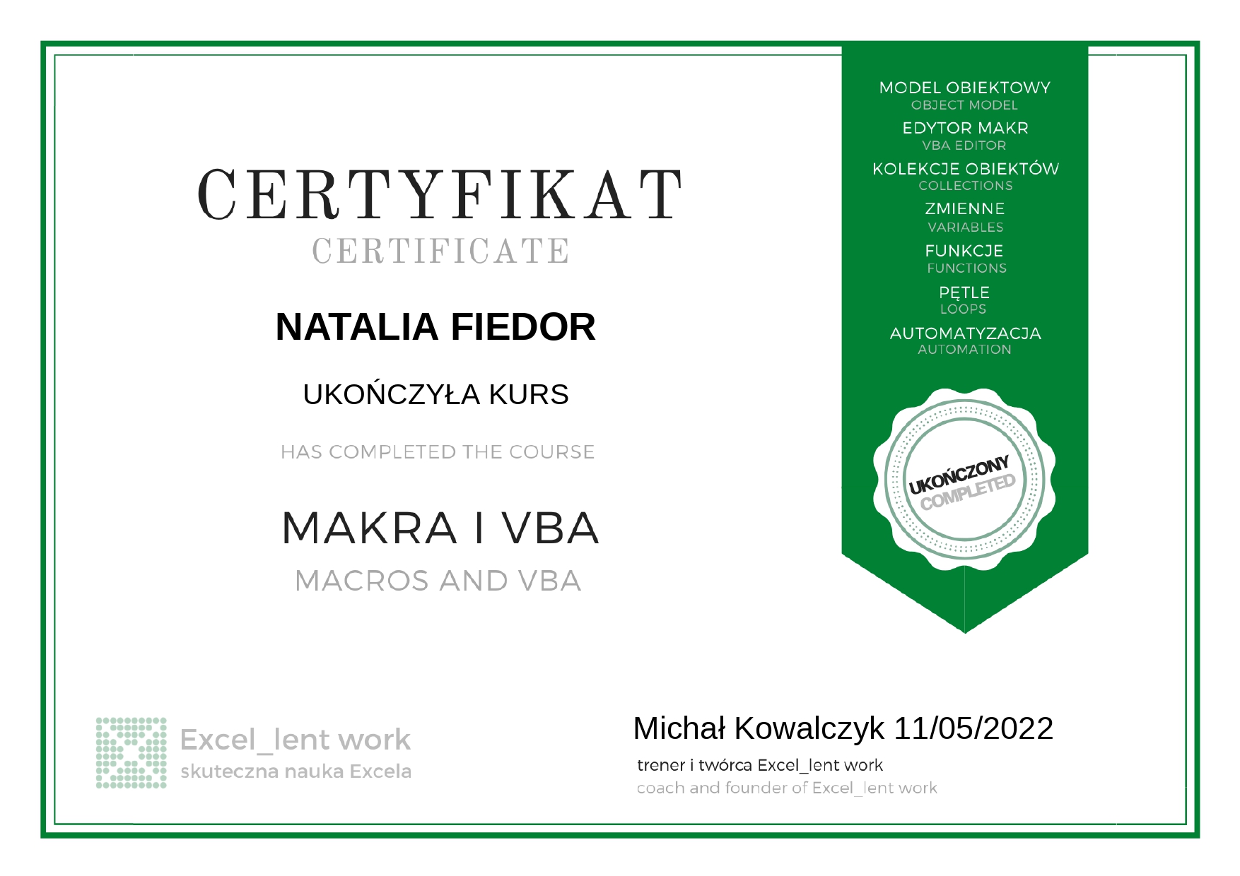 Projektuję automatyzacje w Excelu i VBA, tworzę interaktywne dashboardy oraz raporty, a także przeprowadzam audyty procesów i systemów, które ujawniają potencjał do usprawnień i oszczędności.