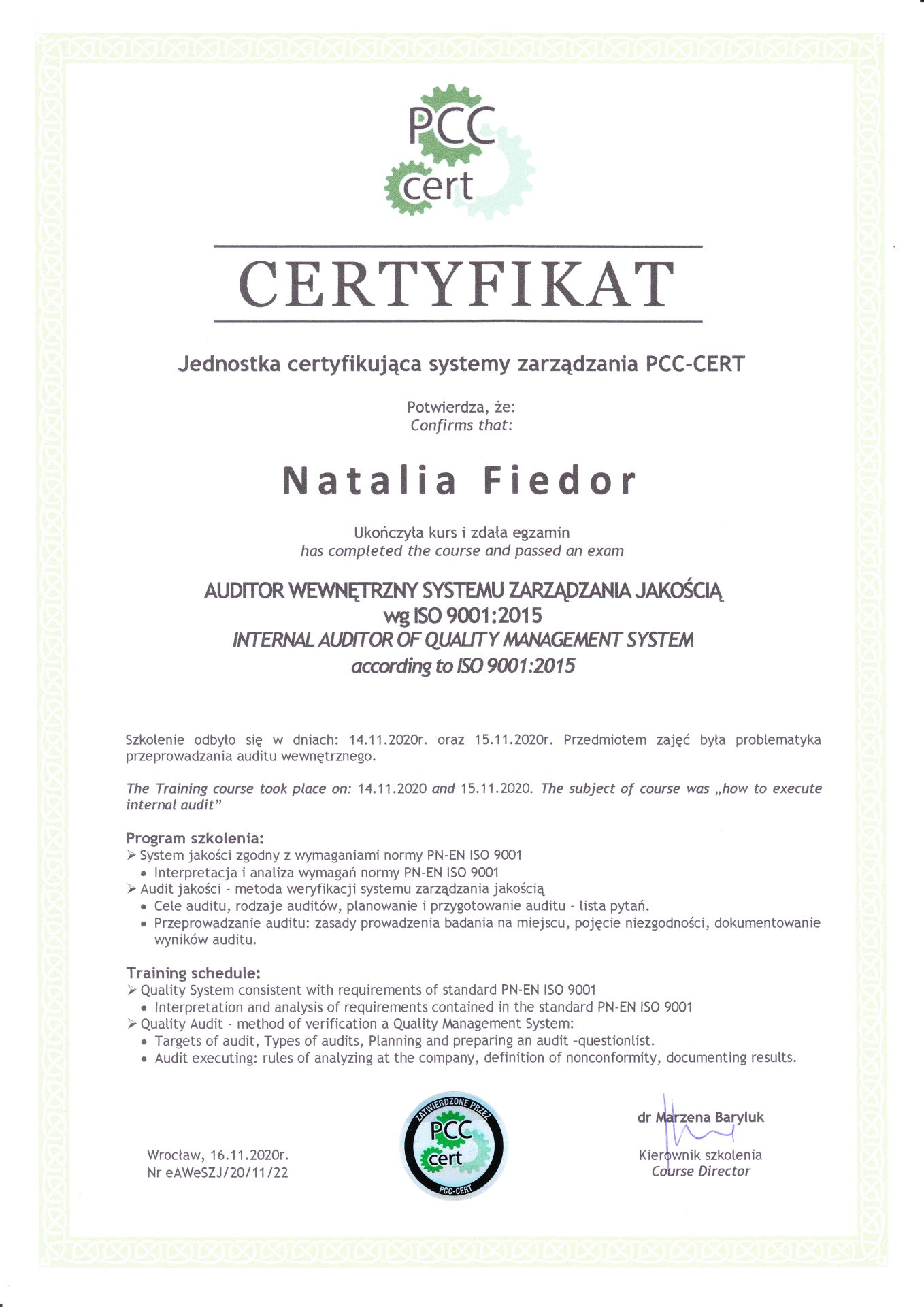 w przygotowaniu sprawozdań z przeprowadzonych audytów oraz w opracowaniu analiz.