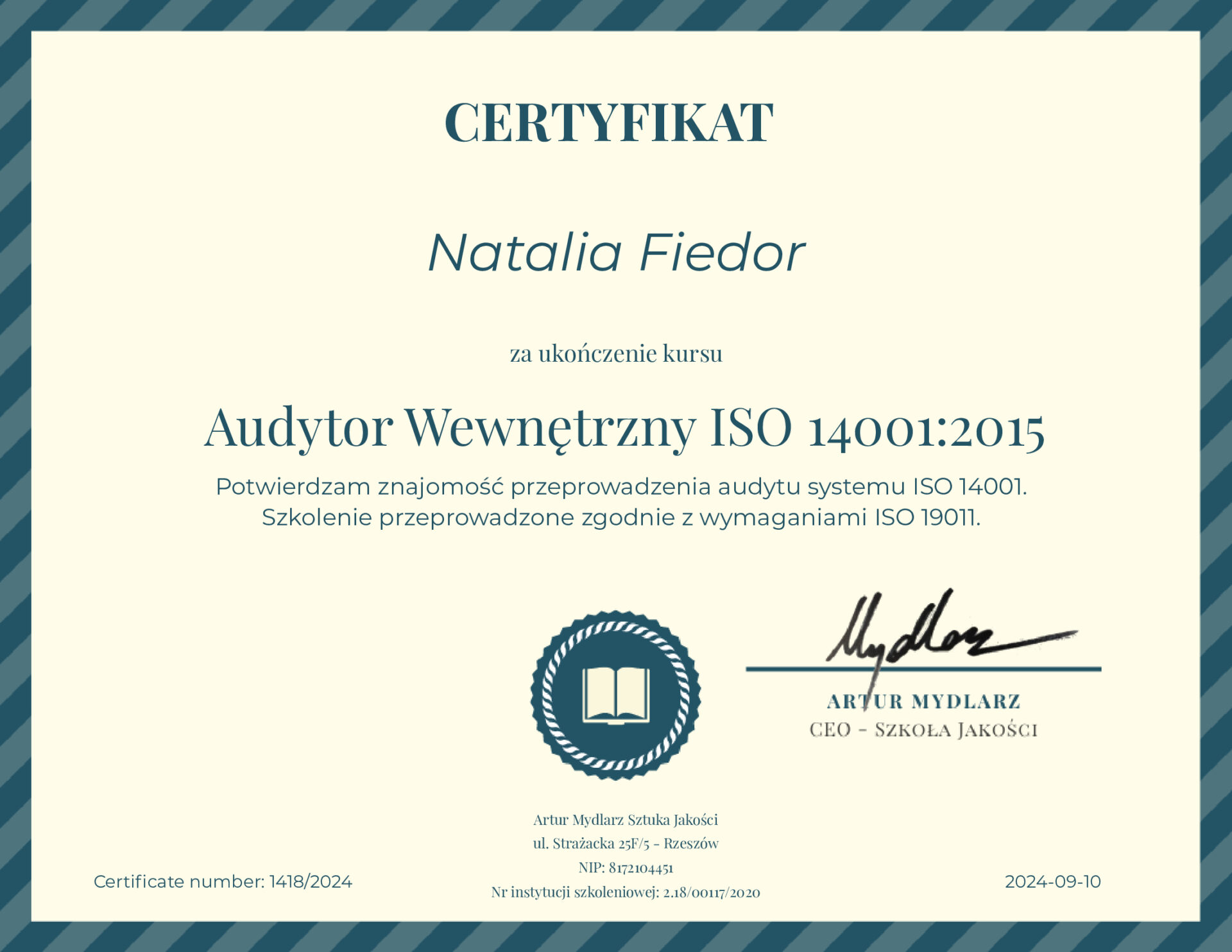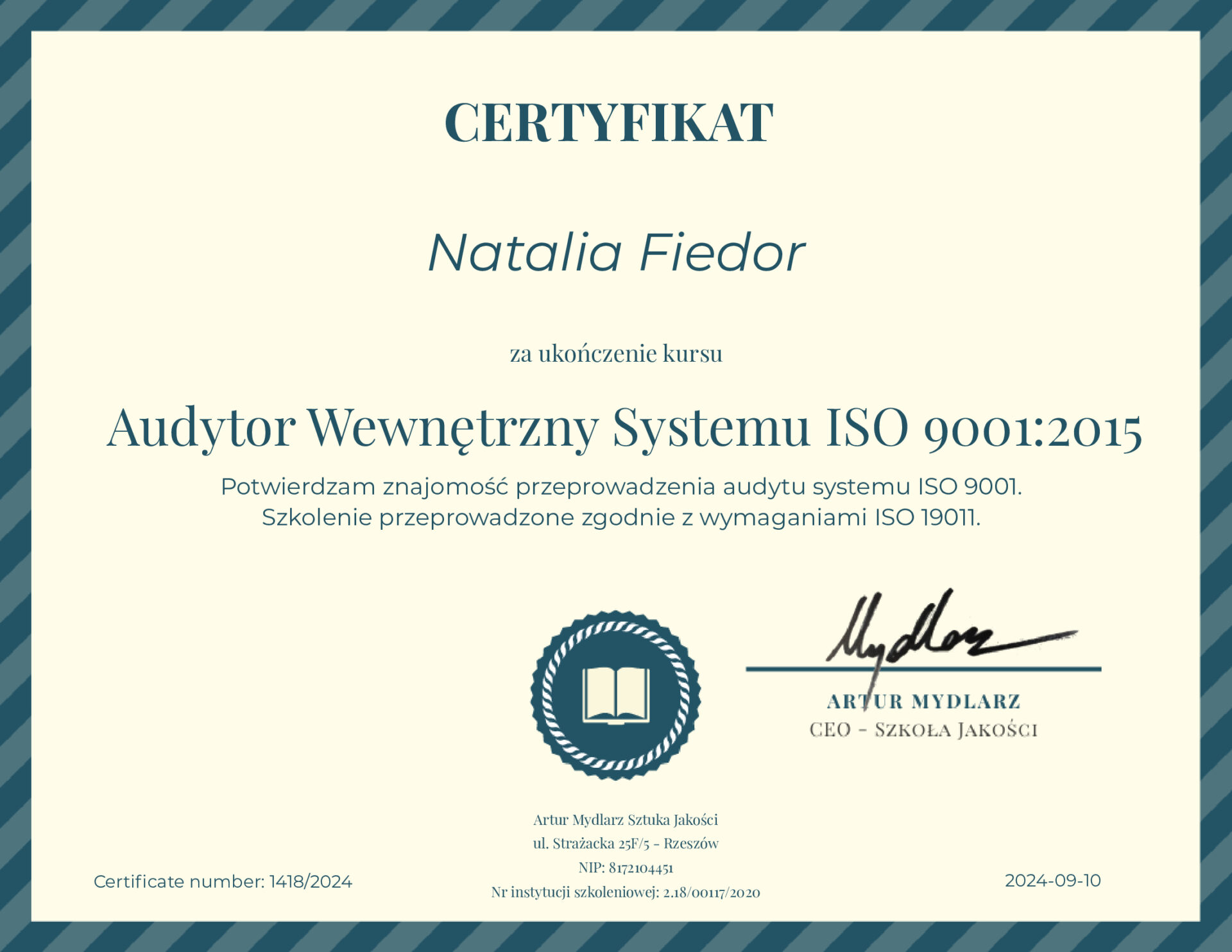 Zawsze staram się wykazywać inicjatywę i podejmować nowe wyzwania. Nie lubię bezczynności. Dokładność, punktualność, wytrwałość to moje mocne strony. Jestem perfekcjonistką. Chociaż dążenie do doskonałości ma swoje pozytywne strony, zdaję sobie sprawę, że doskonałość jest nierealistycznym celem. Przyjmuję do wiadomości, że czasami konieczne są pewne kompromisy, a także warto doceniać swoje osiągnięcia, nawet jeśli nie spełniają idealnych standardów.
